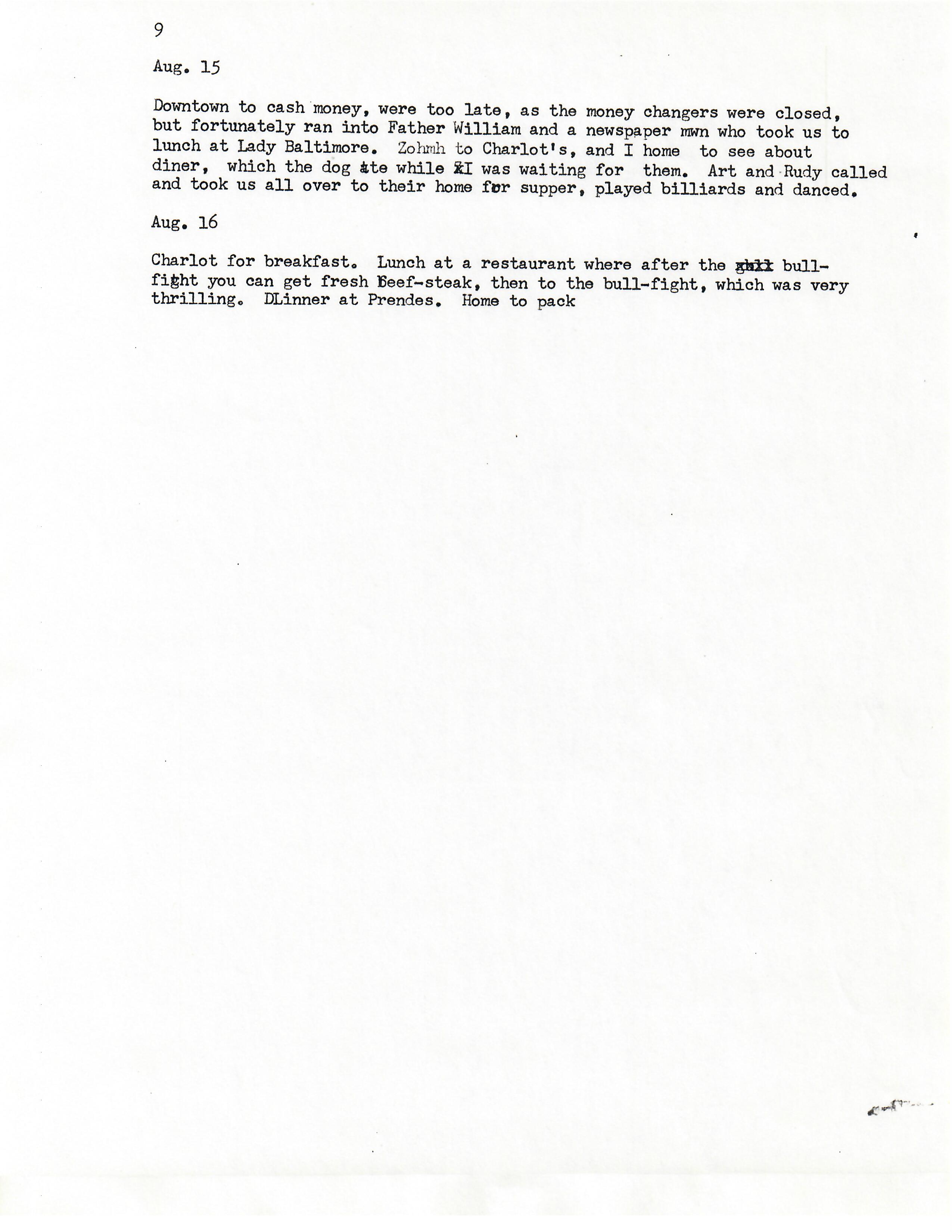 1931 diary, page 9. Berta Day. June 18–August 16, 1931. Mexico. Transcribed by Berta Day in 1981. Nine pages.